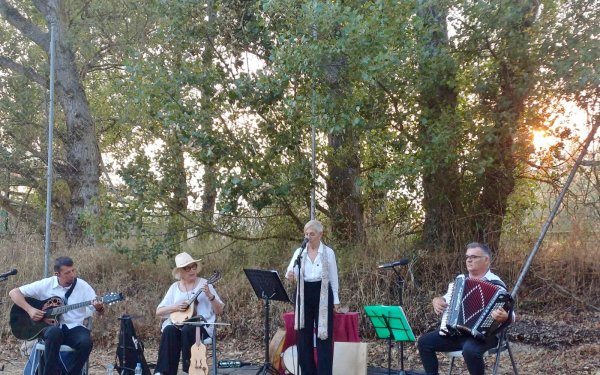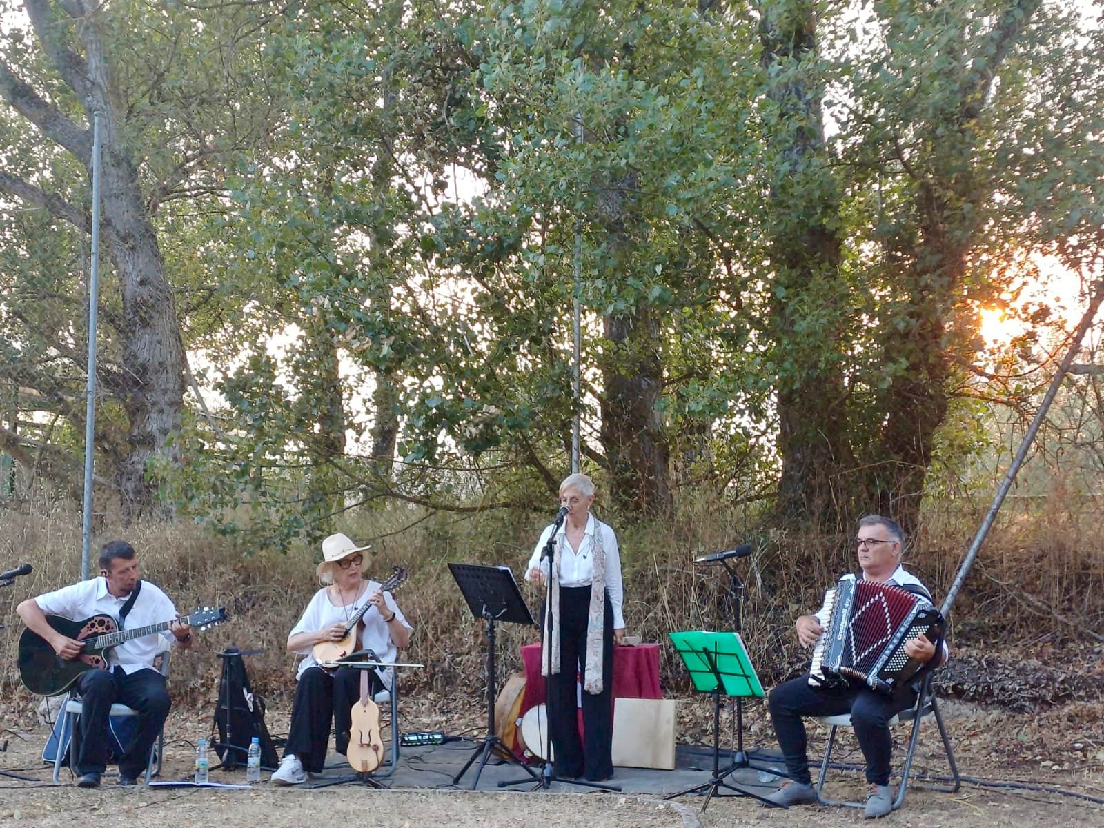María Amaro (voz y percusiones), Modesto Riesco (acordeón y voz), Carmen Brañanova (mandolina, rabel y banjolin) y Roberto Santos (guitarra y coros).